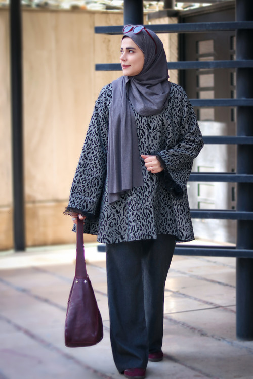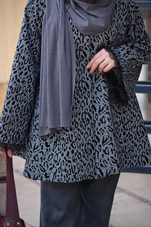 برش کت حالت فون میباشد جنس درجه یک موهر مخملی با پترن پلنگی