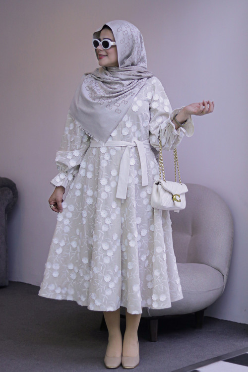 پیراهن اپلیکه با گل های سفید جرابش رو لینن نچرال بهار رو به تصویر میکشونه 😍با دامن نیم کلوش و آزاد مچی چین دارش یه کار خاص شیک برای مجالس شما رقم زده .